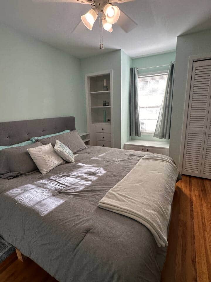 King size bed, upstairs.